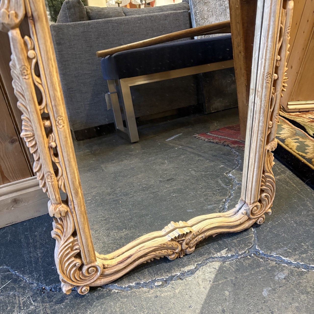 Vintage Rococo Style Carved Wood Mirror