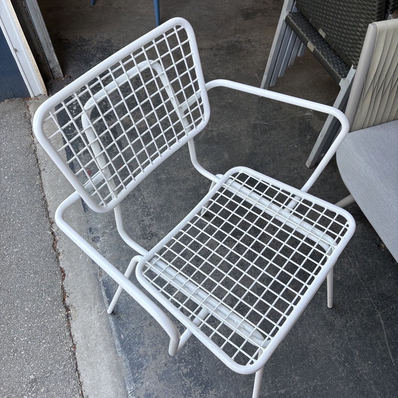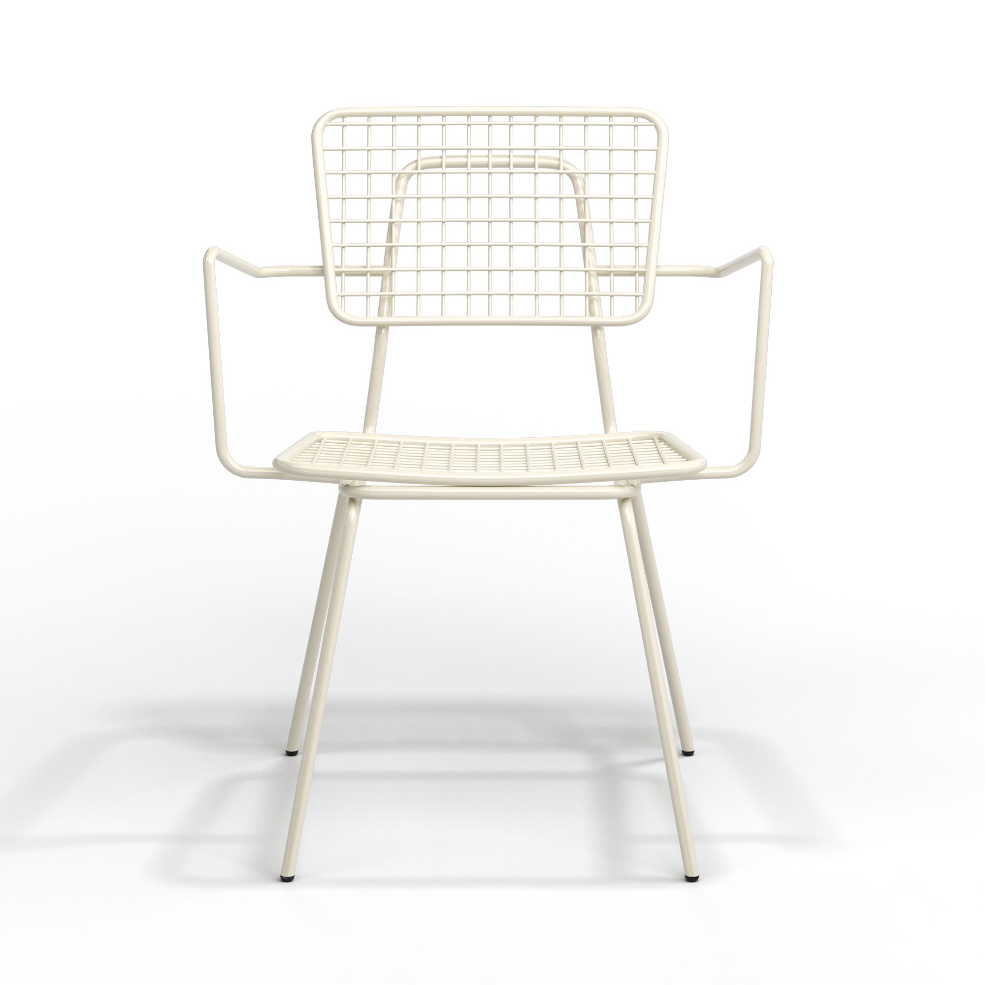 - Tubular steel frame with wire mesh seat and back