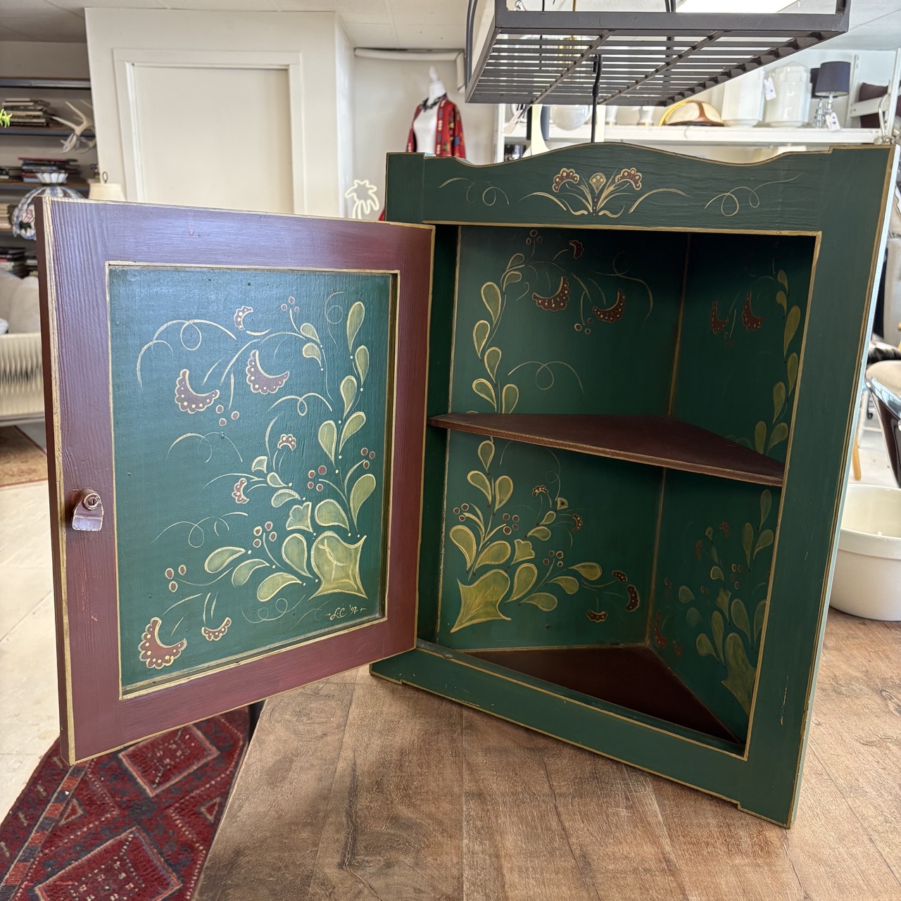 Vintage Folk Art Corner Cabinet