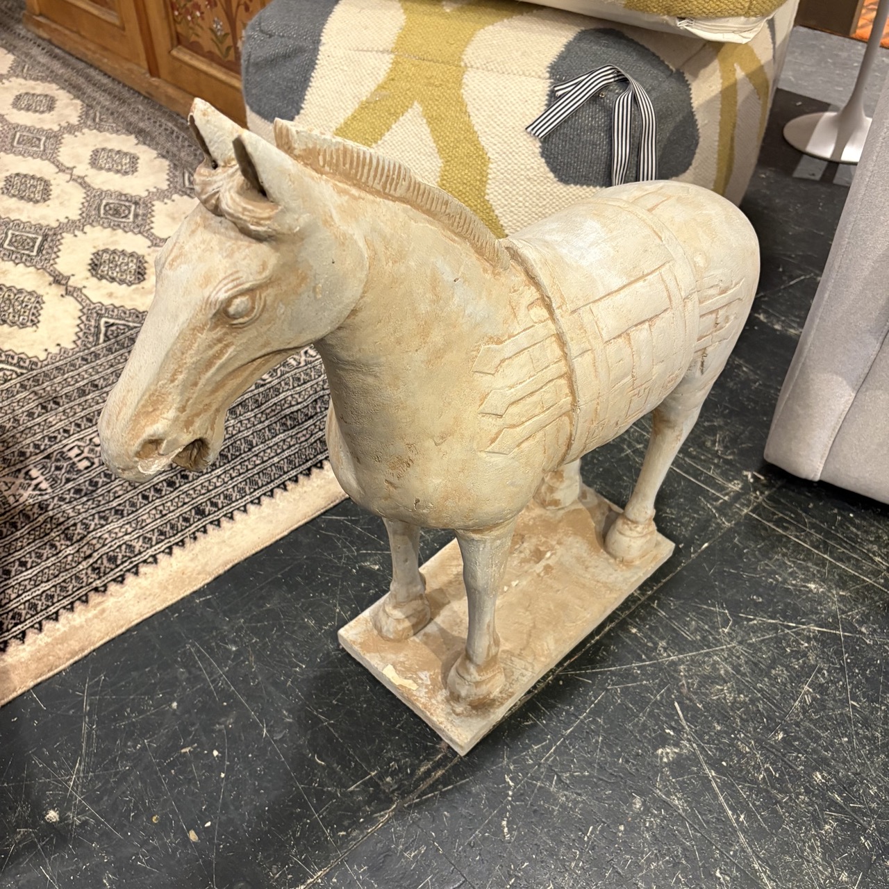 - Wooden horse statue painted in cream