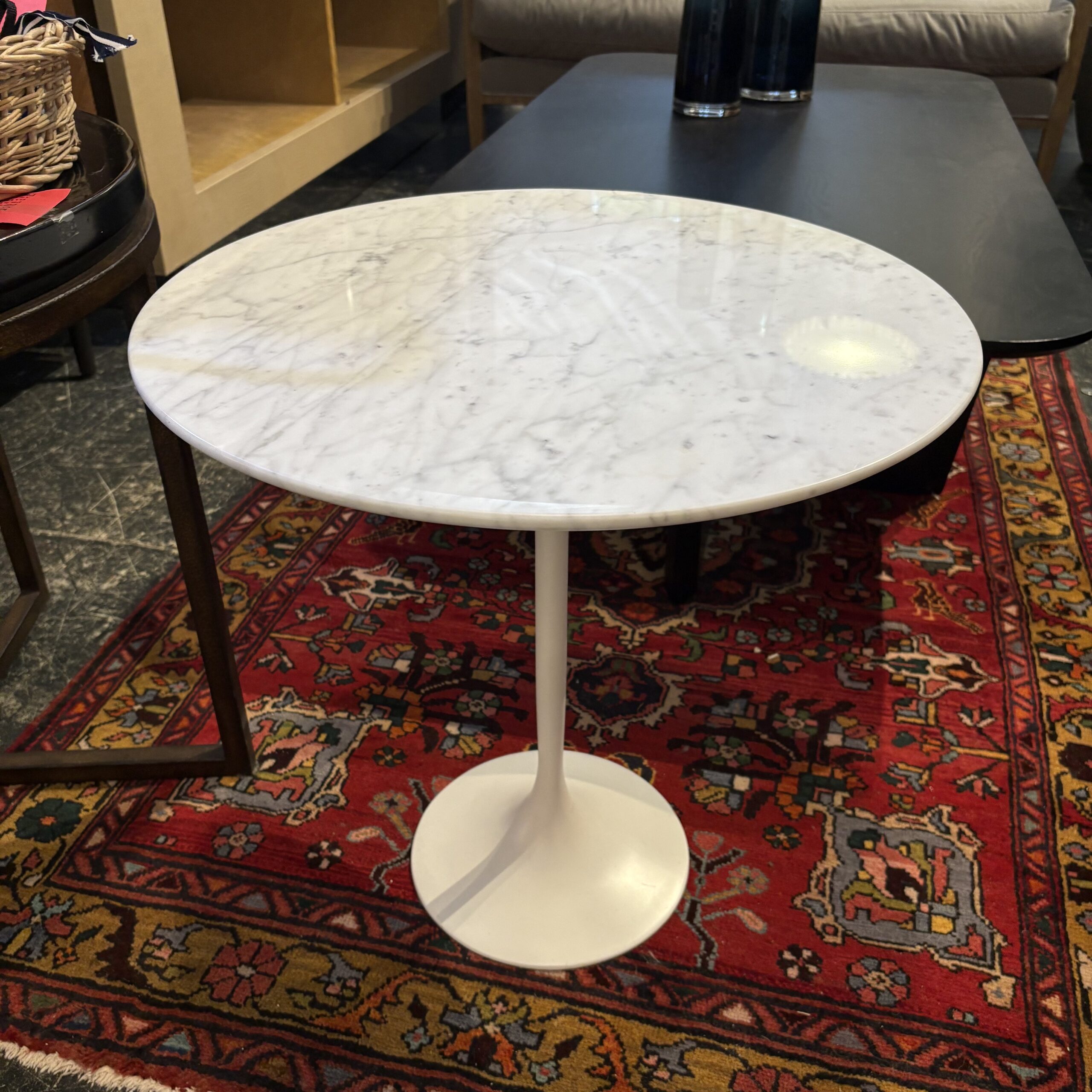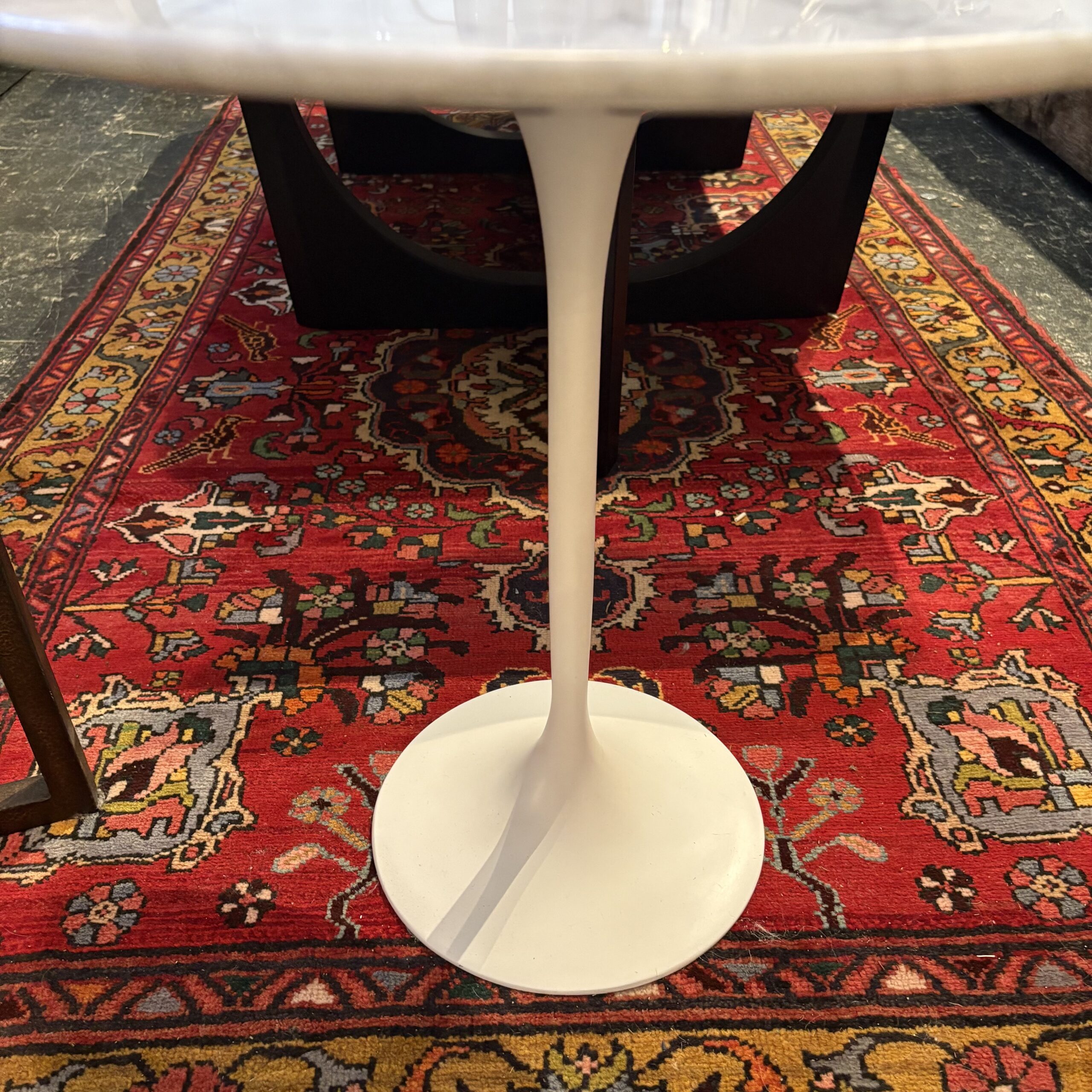 - Marble table top with metal tulip base