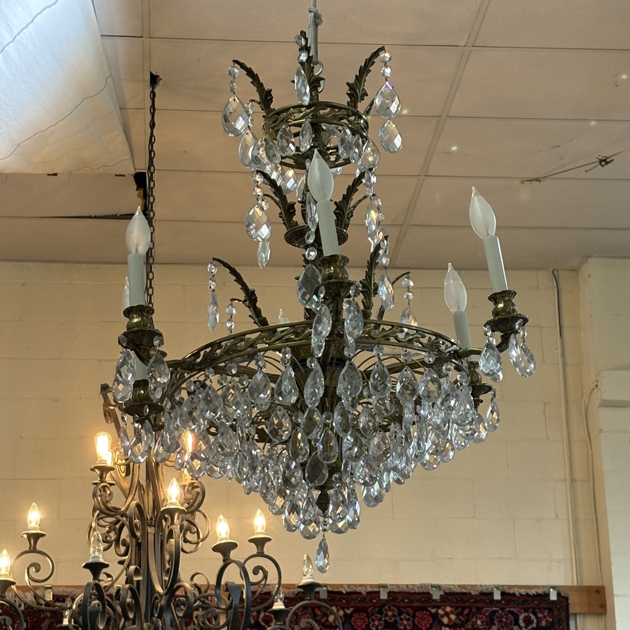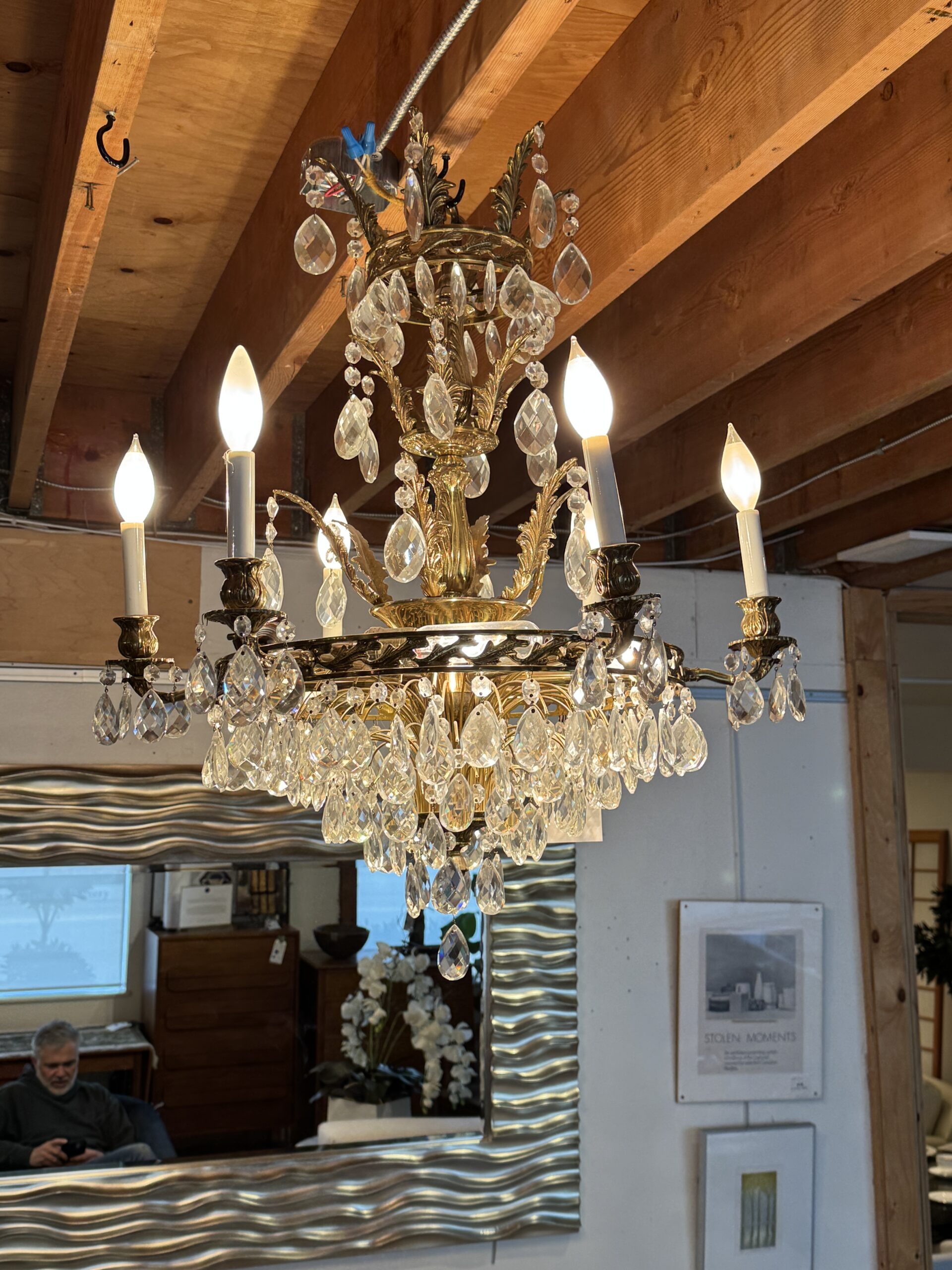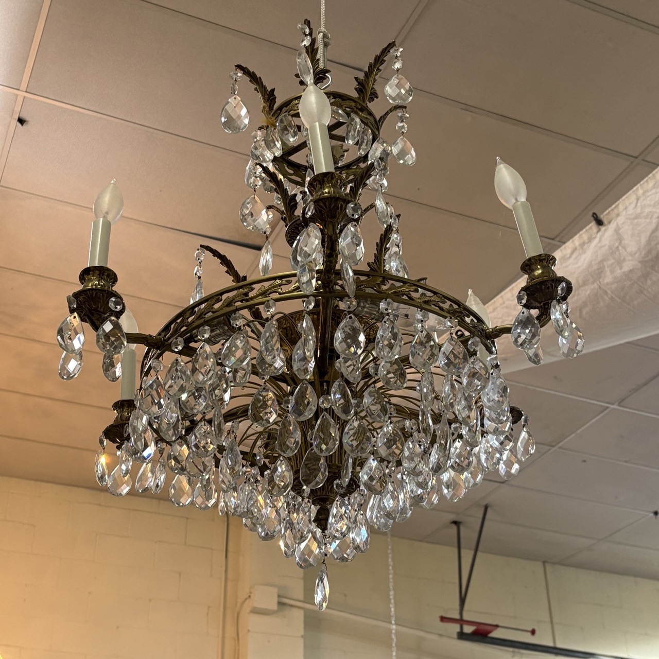 - Brass chandelier with crystals