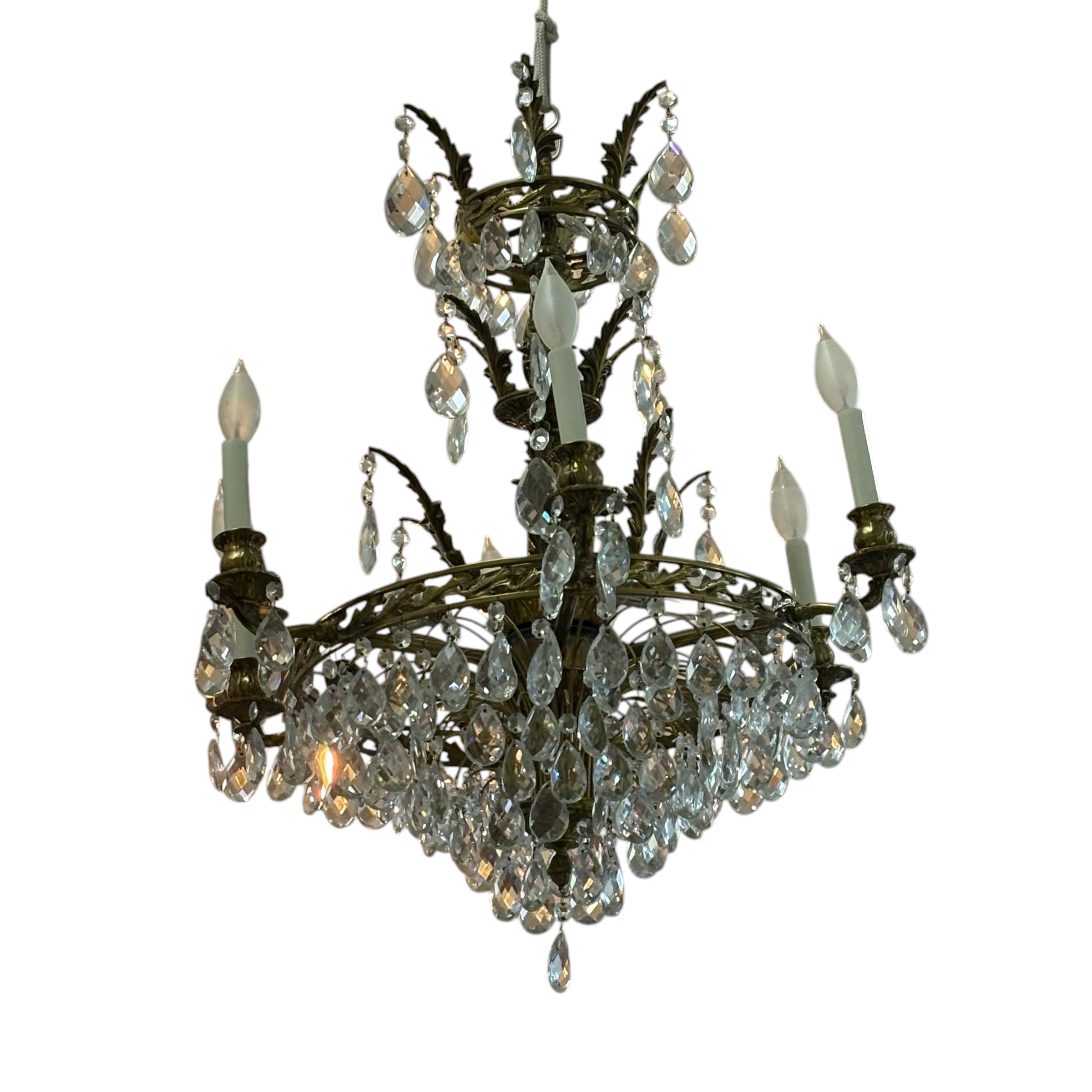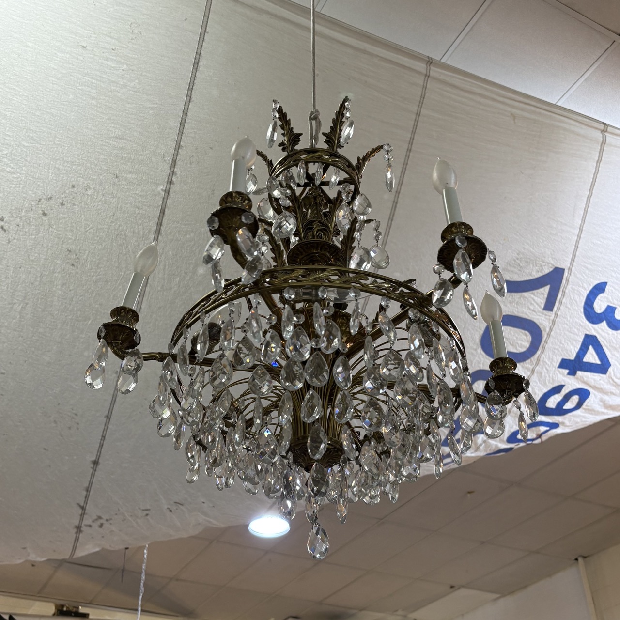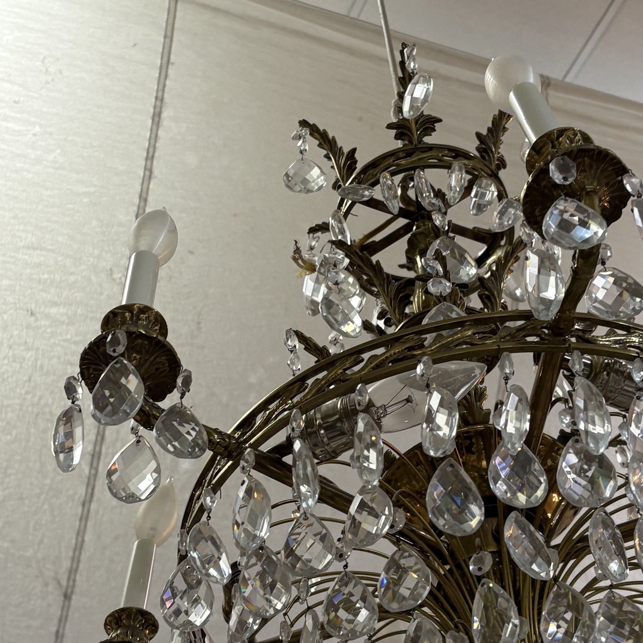 - Brass chandelier with crystals