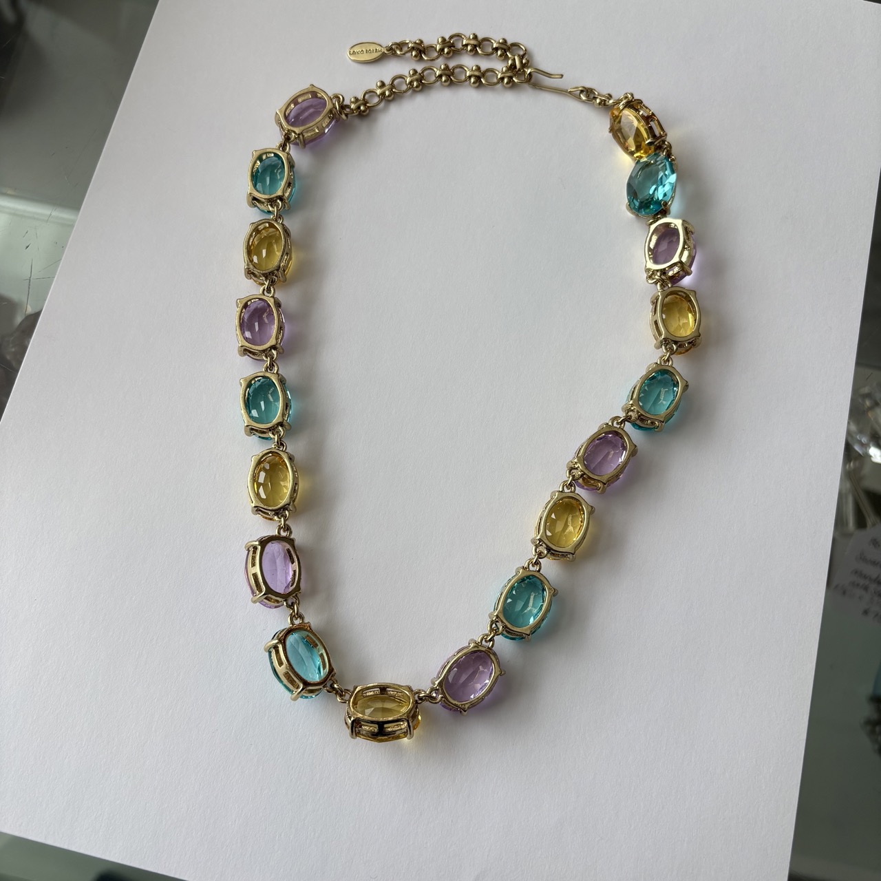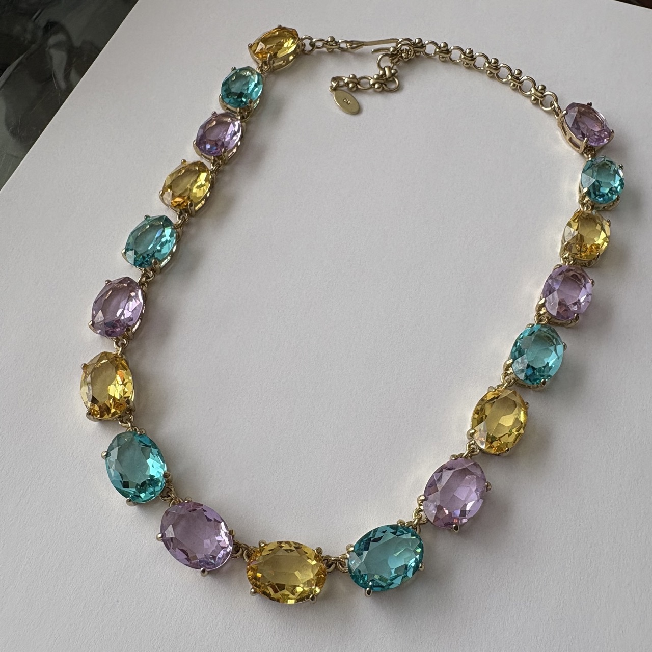 - Various amounts of 18x13mm oval shape faceted glass stones in colours aqua, citrine, and violet