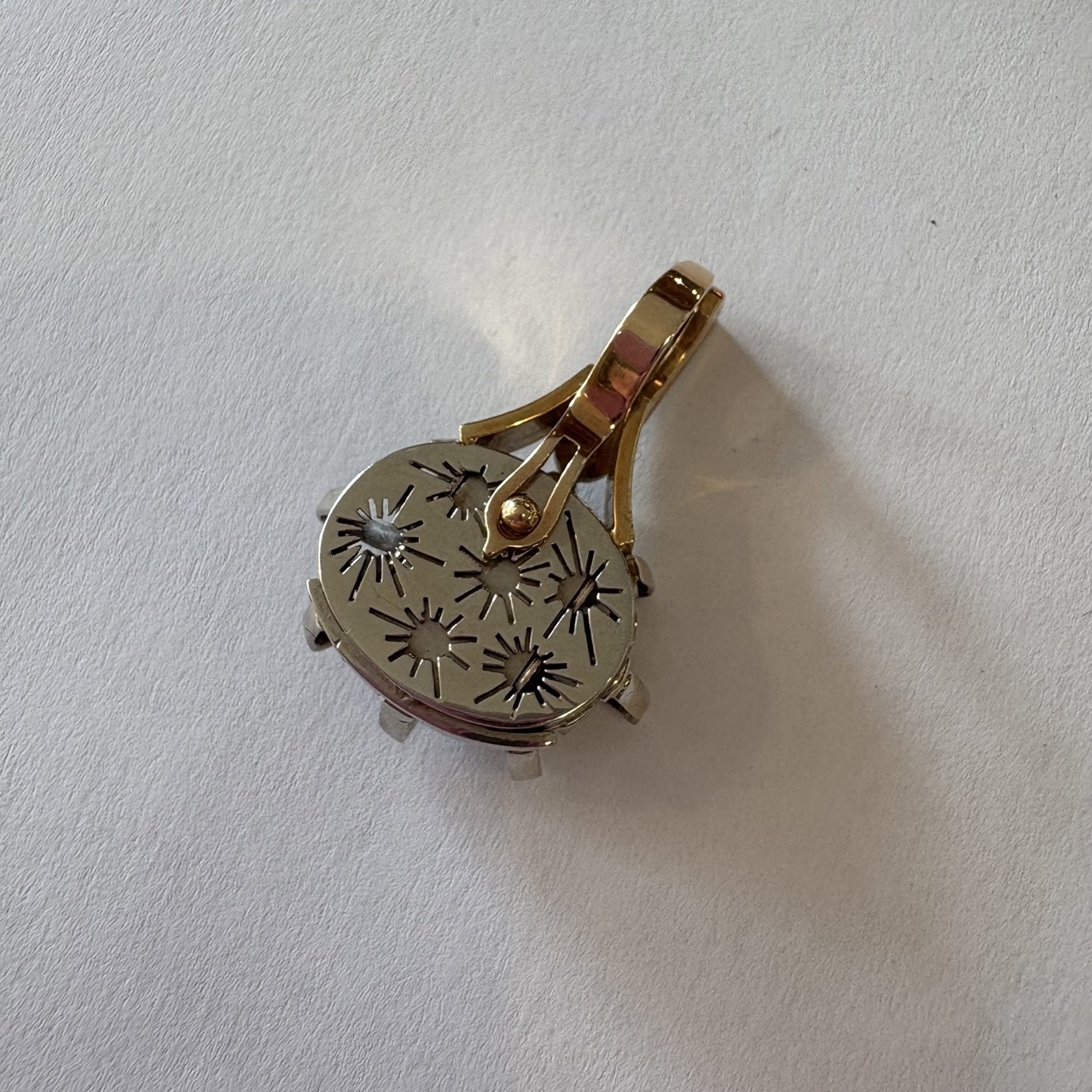 - 14k yellow and white gold custom designed, hand made tear drop shaped pendant with. sliding enhancer bail, measurements 30.5 x 21.5 x 8.5mm in diameter