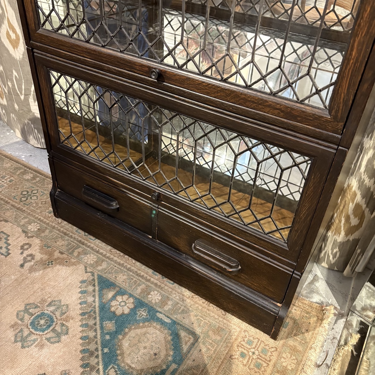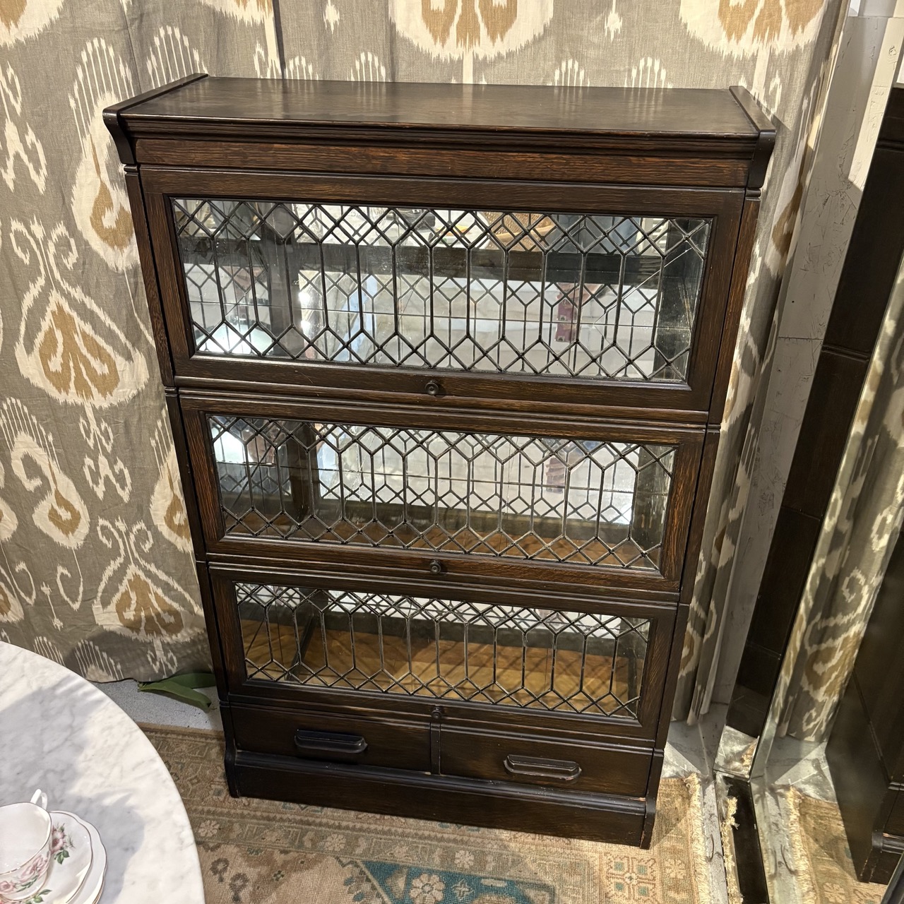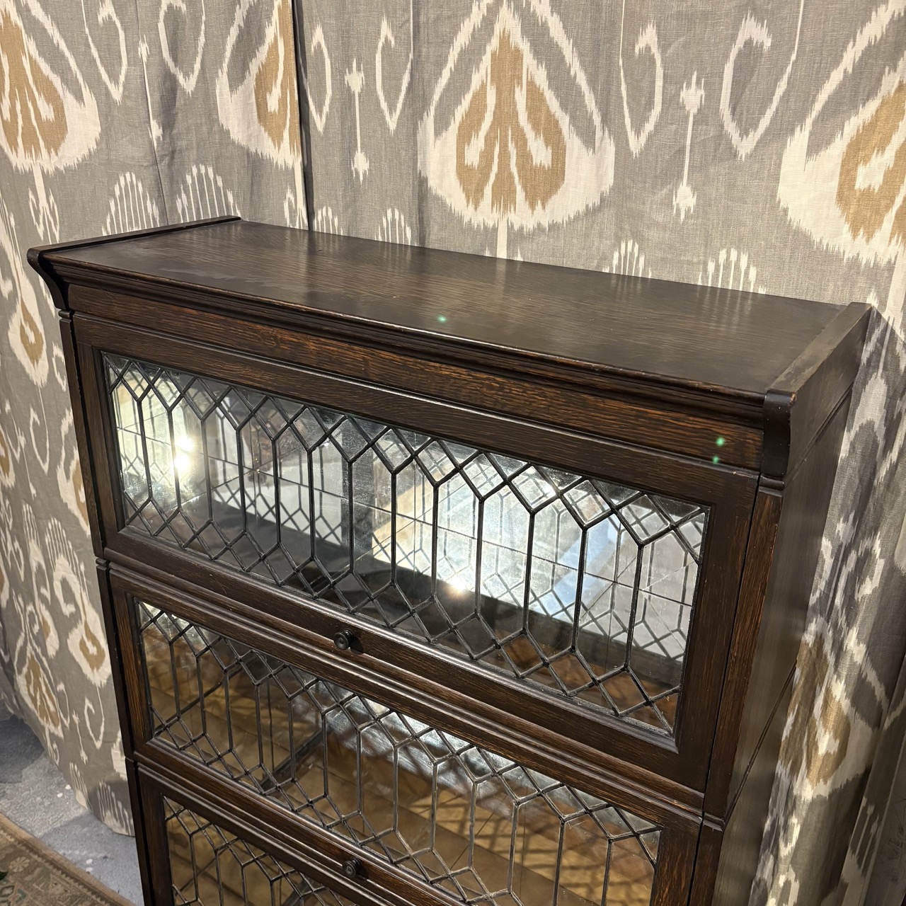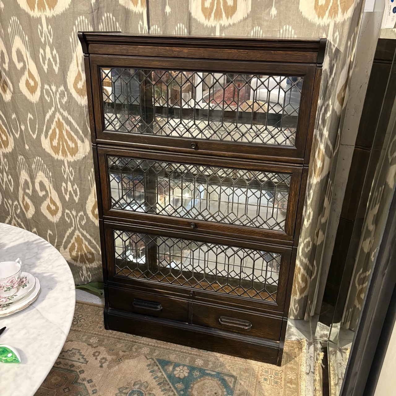 Vintage Lawyer's Bookcase with Leaded Glass Doors