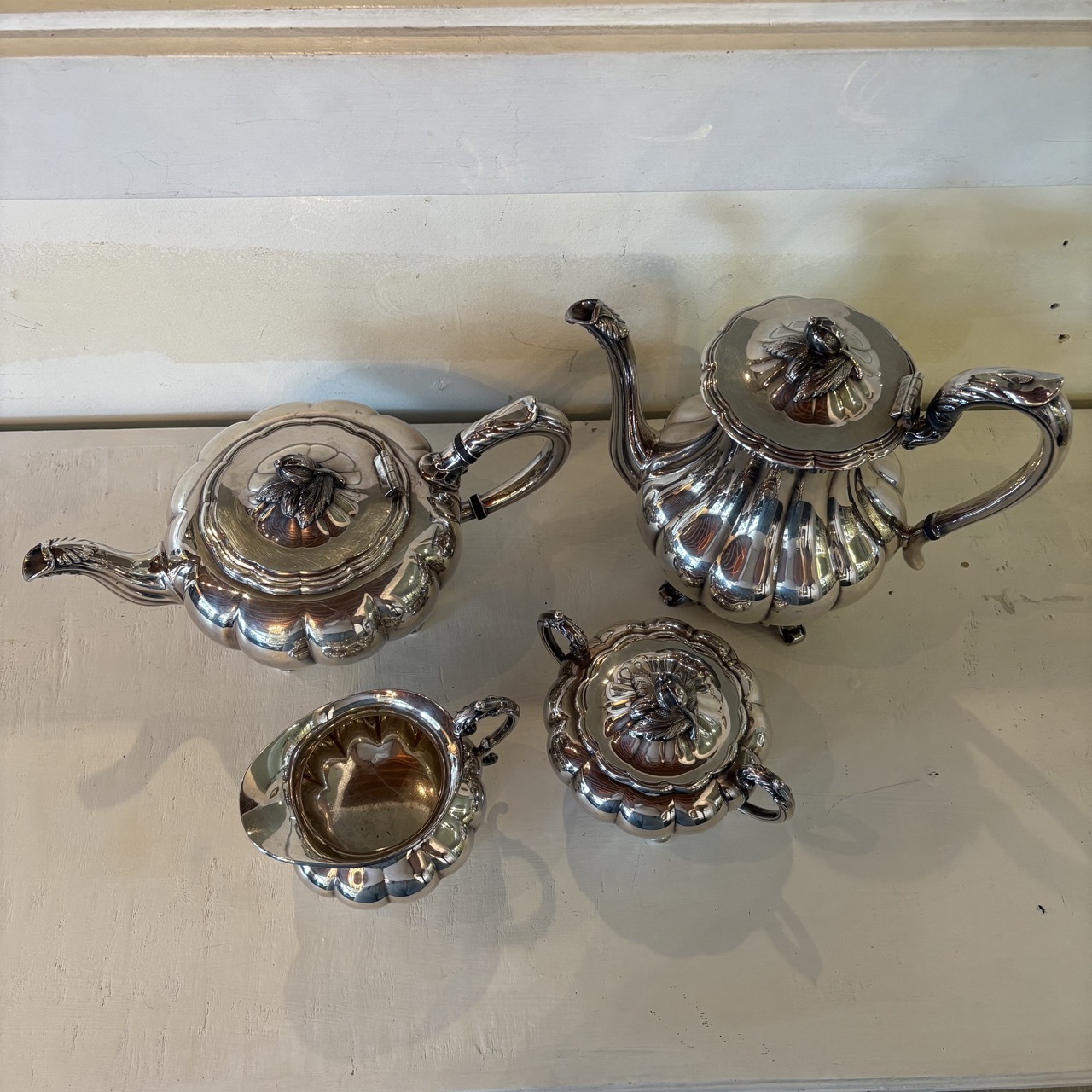 - Set includes coffee pot, tea pot, sugar bowl , and milk/cream pitcher