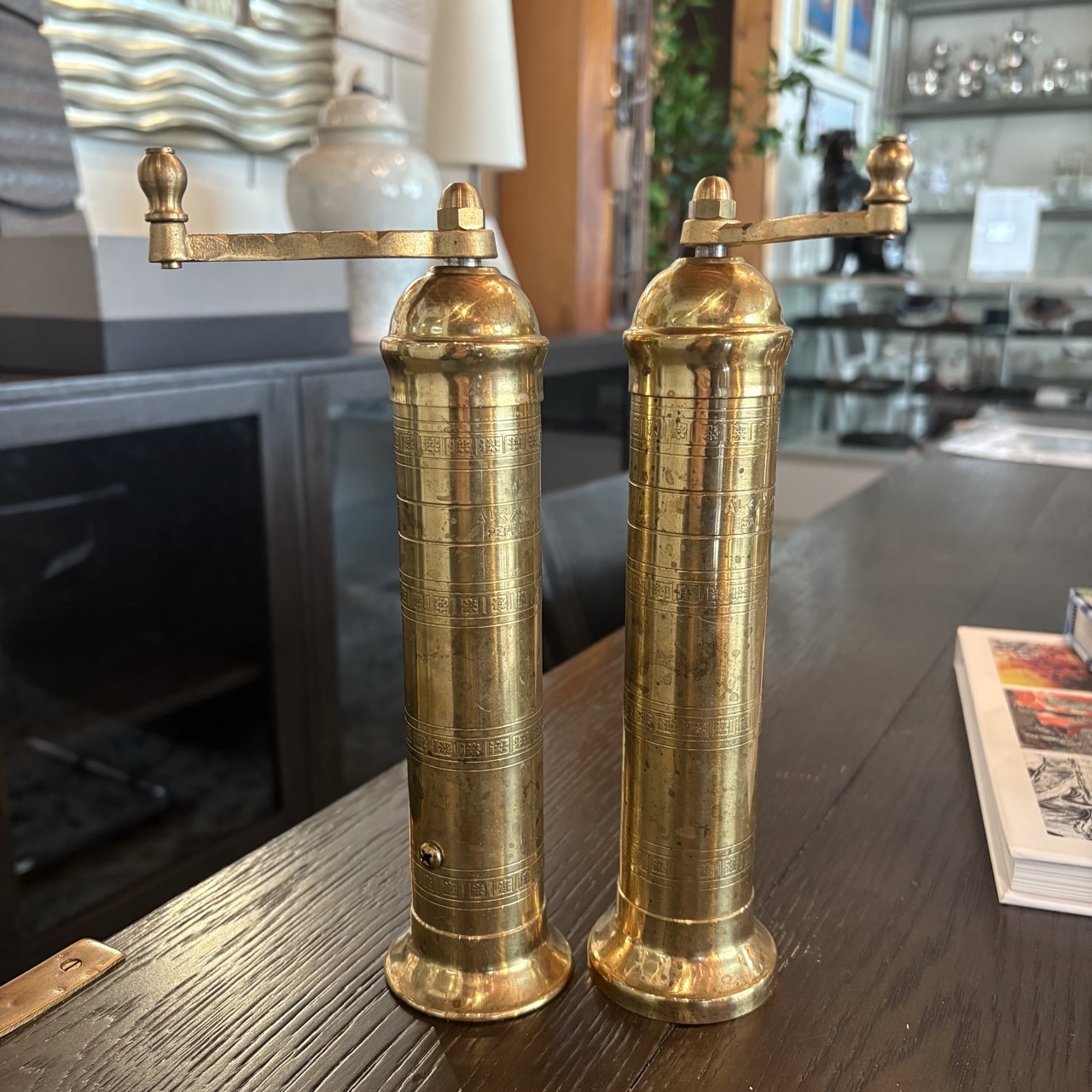 - Solid brass mills, each piece is individually latched, polished, and assembled by hand by the artisans of Alexander Greek Brass Mills