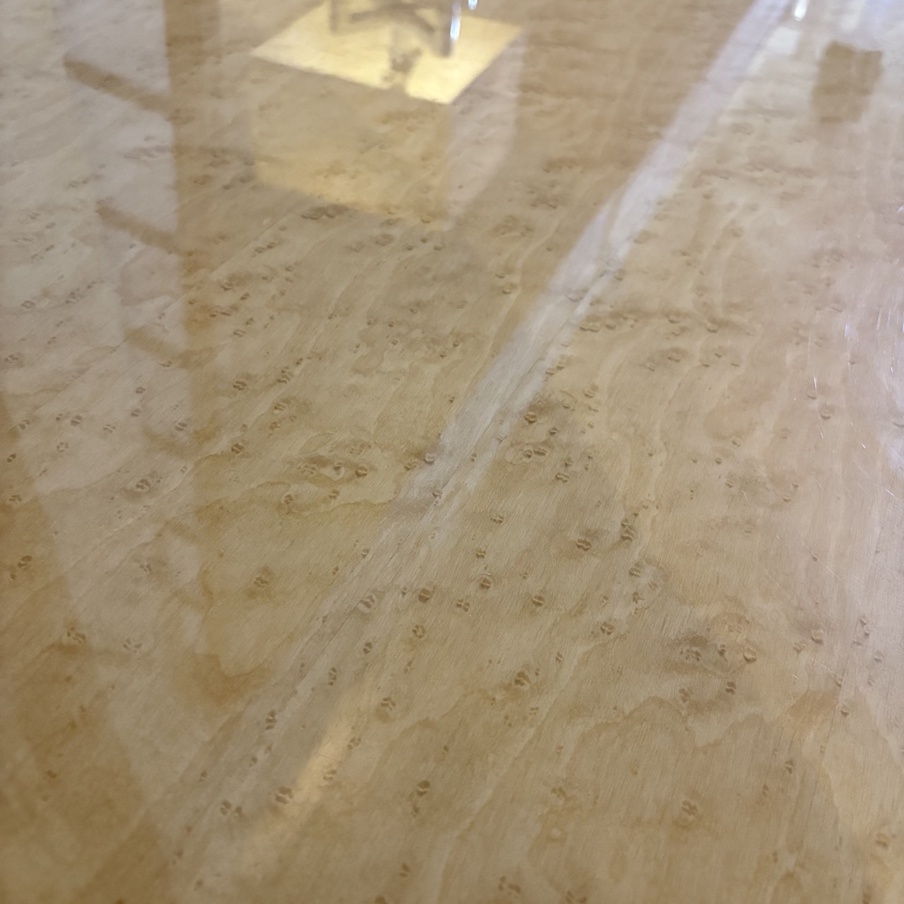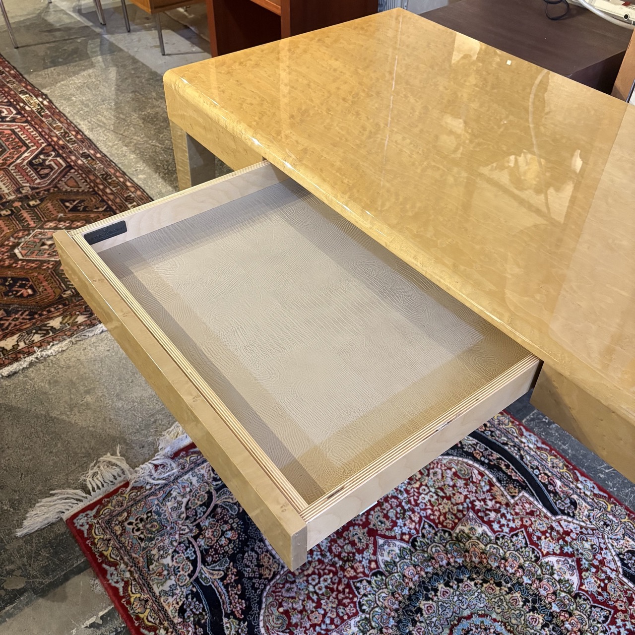 - High gloss 'Bird's Eye Maple' veneer and printed iguana leather lined drawer