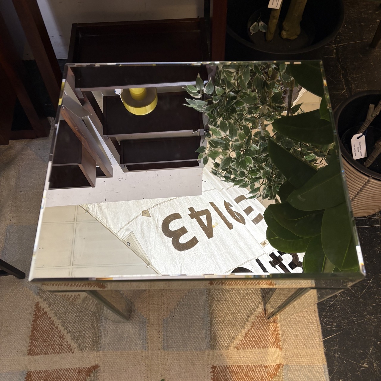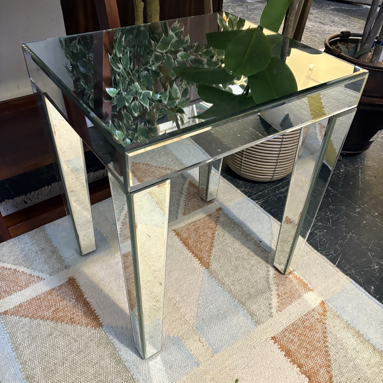 - Mirrored glass side table
