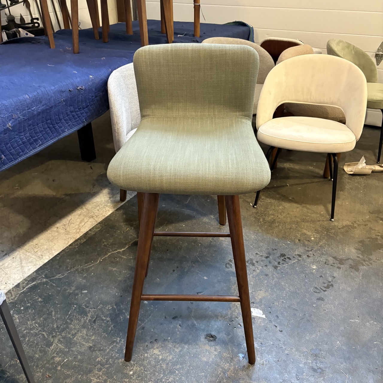 Pair of Olio Green Walnut Swivel Bar Stool