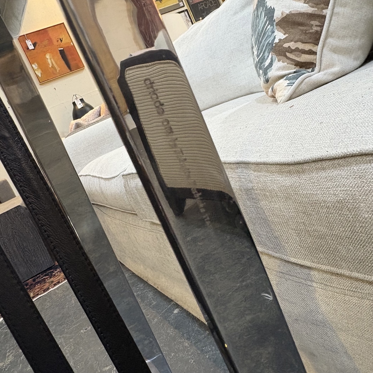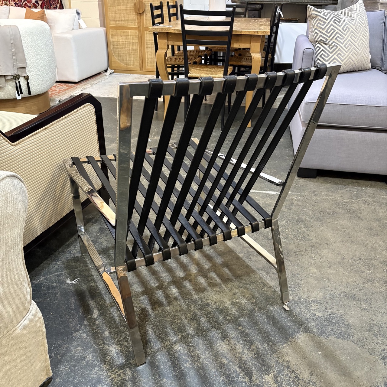 - Mirror polished stainless steel structure with leather bands for the seat and back