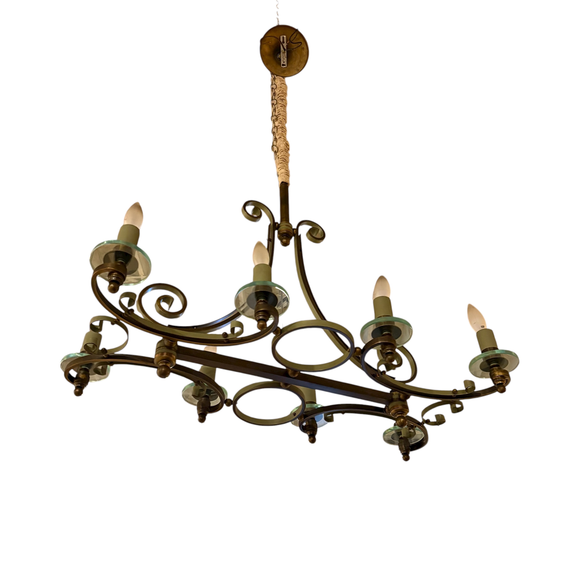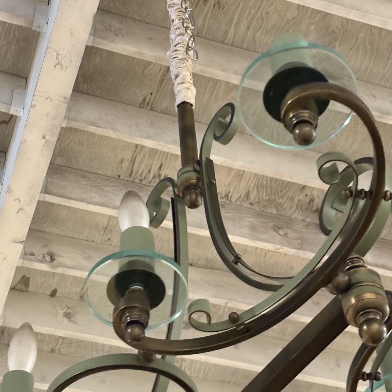 - Iron chandelier with glass candle cups